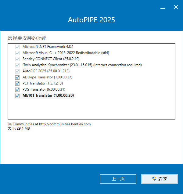 3、根据上图提示,我们点击“安装”选项开始安装Bentley AutoPIPE 2025 v25.00.01.213 64位简体中文版软件,如下图所示: