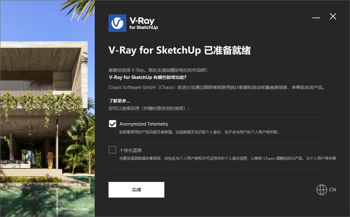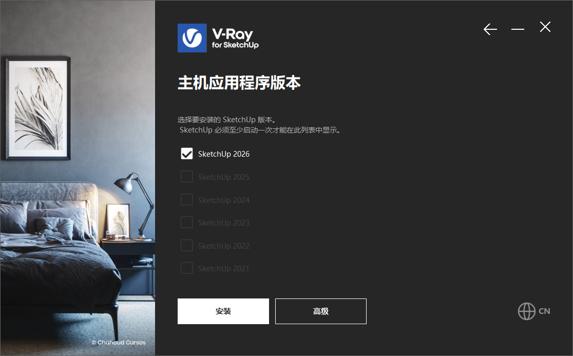 V-Ray 7.20.00 for SketchUp 2021-2026 64位软件目前支持英文、日本语和简体中文,知识兔支持Sketchup2021-2026版本,知识兔支持Win10/Win11系统。