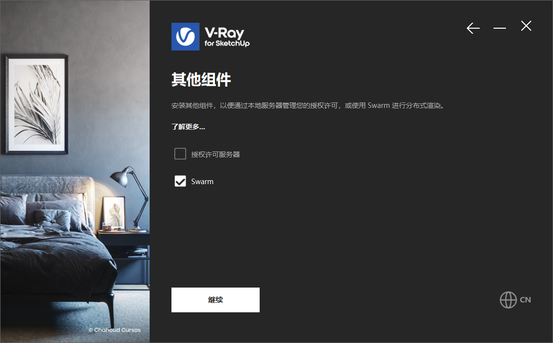 4、我们根据上图提示,知识兔点击“继续”准备安装V-Ray 7.20.00 for SketchUp 2021-2026 64位简体中文版软件,如下图所示: