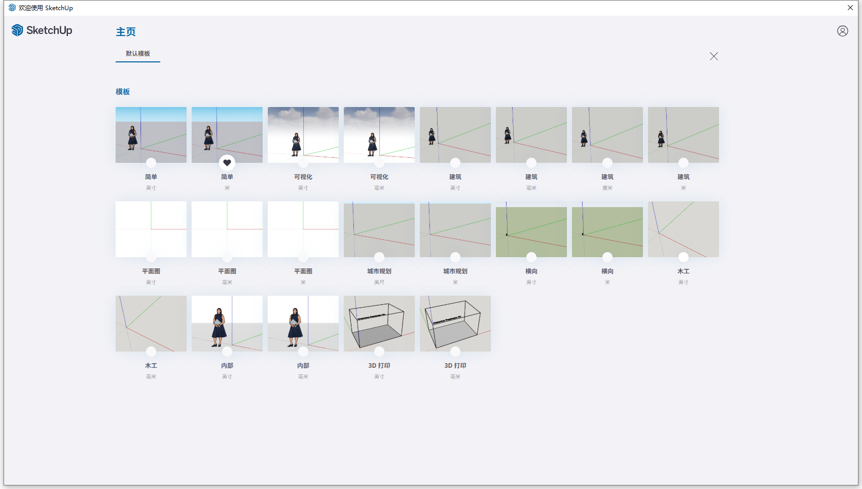 6、现在我们根据上图提示,知识兔选择一个模板打开Sketchup Pro 2026软件,如下图所示: