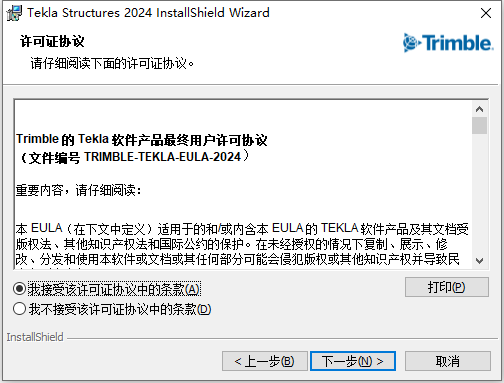6、从上图我们看到,Tekla Structures 2024 With SP10 64位简体中文版软件默认安装路径为C:\Program Files\Tekla Structures,我们根据提示知识兔点击“下一步”,如下图所示: