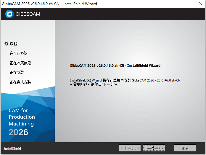 7、等待GIBBSCAM 2026 v26.0.46 64位简体中文版软件安装完成后,如下图所示: